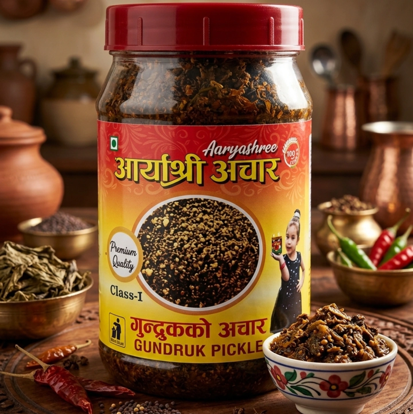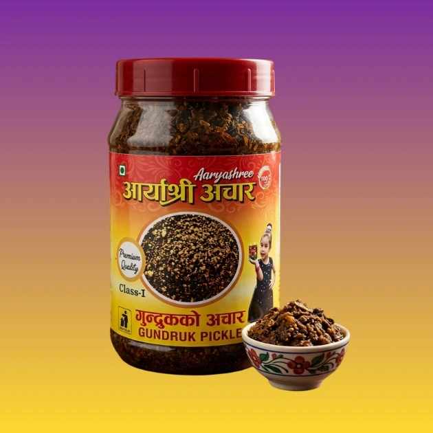 Aaryashree Gundruk Pickle brings you the quintessential taste of Nepal. Made from mustard, radish, or cauliflower leaves that are fermented to perfection and then prepared as a savory pickle, our Gundruk is a masterclass in traditional preservation. It offers a unique, slightly tart, and earthy flavor that has been a staple of mountain diets for generations.